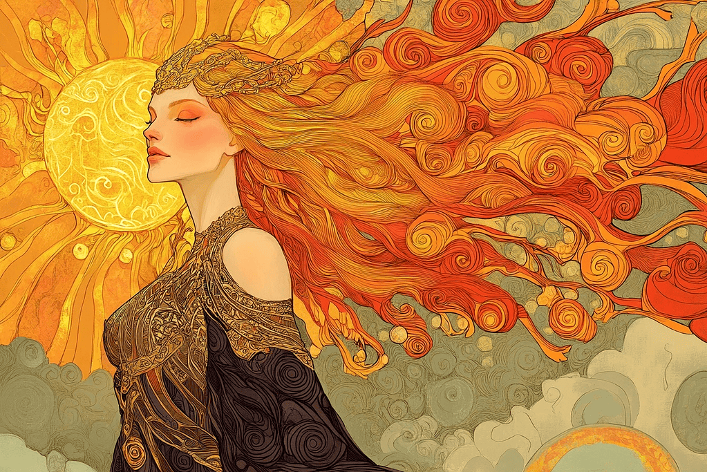 Sol represents the sun itself, driving her chariot across the sky every day to bring light to Midgard (Earth). Her journey continues until Ragnarök when Sköll, a monstrous wolf, is prophesied to devour her.