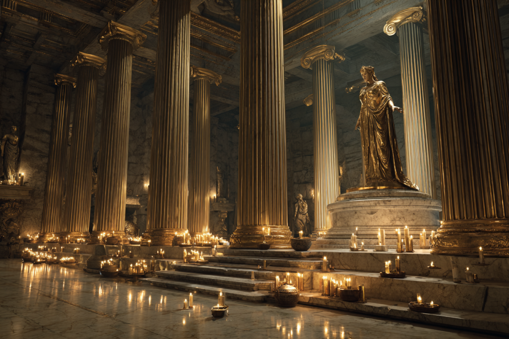 The tricky part is that the most famous god statues and goddess statues in Greek history were often made of materials like gold and ivory, or were displayed in places where later conflict, rebuilding, and reuse of materials took their toll.