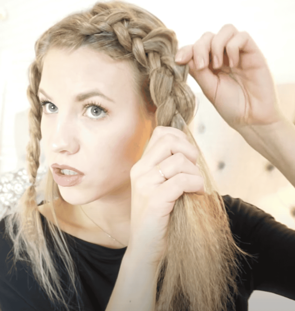 For a softer, more feminine Viking look, begin with loose hair and create a half-up style.