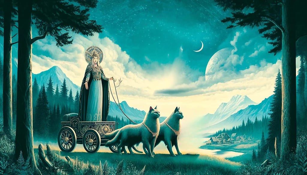 The cats’ role in pulling Freya’s chariot also signifies their importance in ritual and celestial events, indicating their integral role in Freya’s divine responsibilities. In Norse society, cats were valued for their vermin control and were seen as good luck, further linking Freya with domestic and everyday comforts, as well as the more profound aspects of love and care.