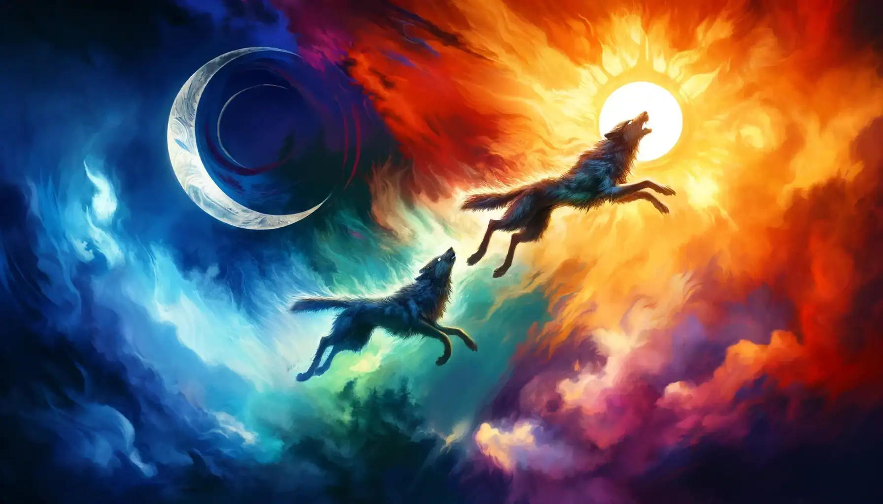 Skoll, the chaser of the sun, and Hati, who hunts the moon, embody the relentless pursuit that characterizes the Viking understanding of time as a cyclical and fatalistic progression toward an inevitable end. Their chase not only marks the daily cycle of night and day but also mirrors the Norse belief in the cyclical nature of all existence, where every end is a prelude to a new beginning.