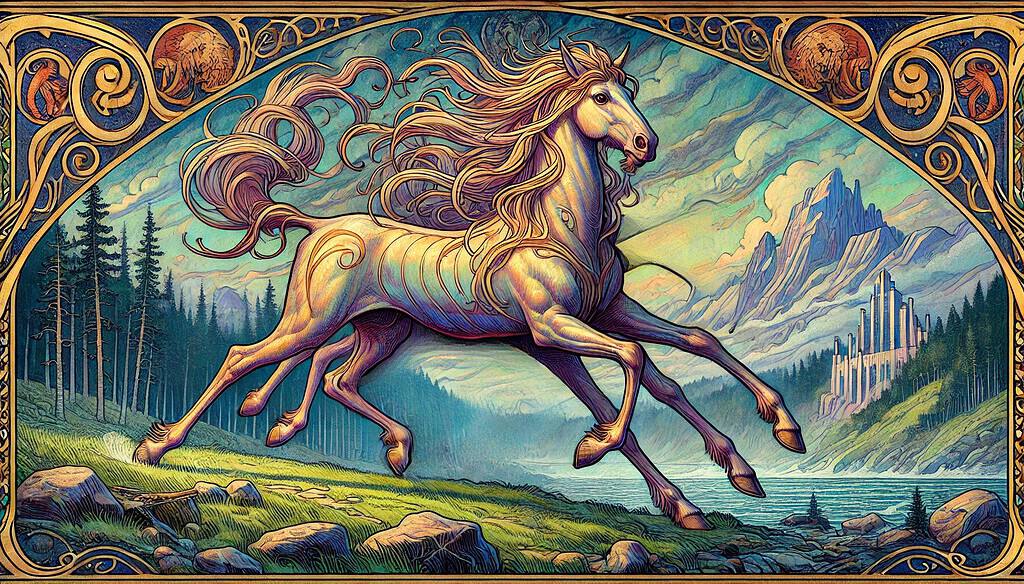 This horse signifies not just physical swiftness but also spiritual journeying and exploration of the unknown—Odin’s quest for knowledge beyond mortal comprehension.