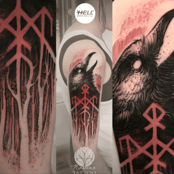 These vibrant designs not only showcase the raven in new and visually striking ways but also infuse traditional symbolism with personal significance, making each tattoo a unique piece of art tailored to the wearer’s connection with Norse mythology.