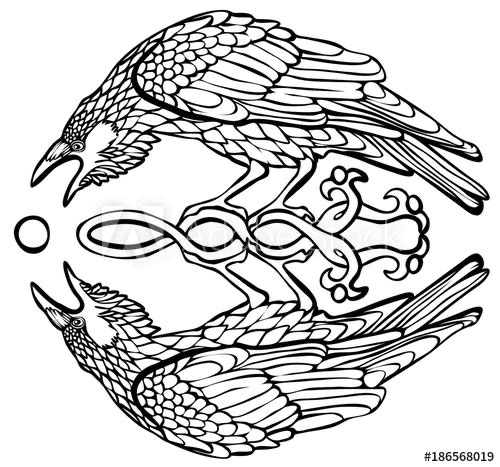 This design not only reflects the depth of Norse mythology but also captures the ravens’ symbolic role as keepers of knowledge and guardians of the spiritual realm.