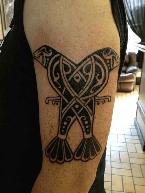 When integrated into raven tattoos, this knotwork enhances the mystique and symbolic depth of the designs.