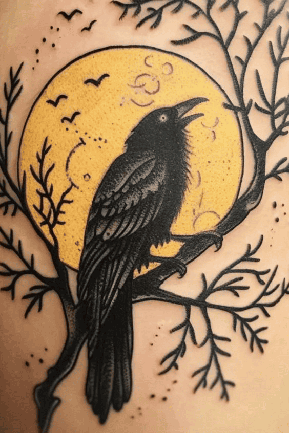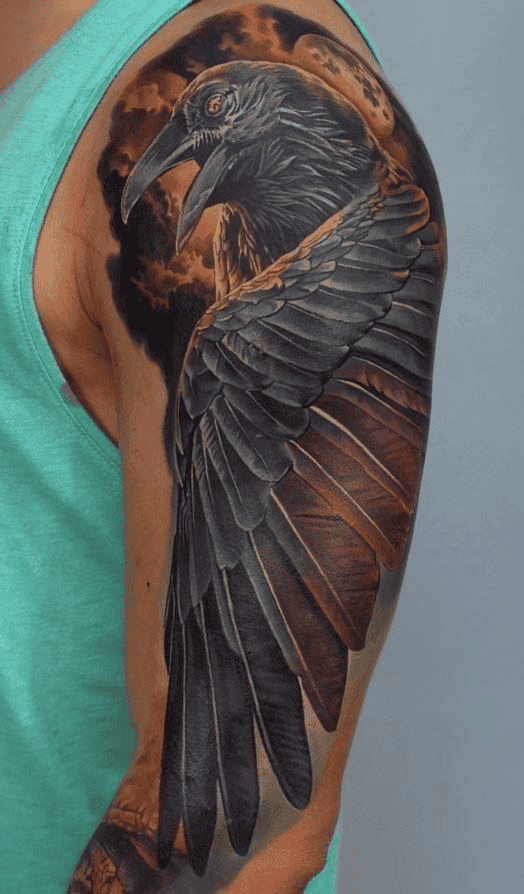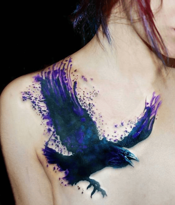Introducing color into raven tattoo designs can dramatically alter their impact and meaning.