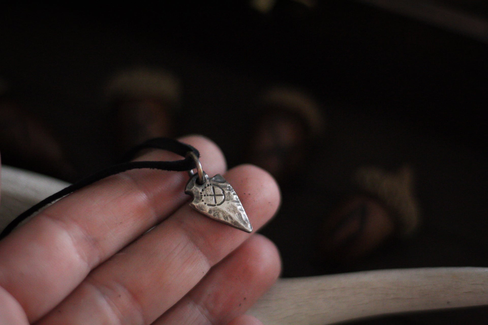 What better way to celebrate your ancestral heritage than with this arrowhead pendant? Crafted entirely by hand (not cast) in solid fine silver, this pendant features your choice of ancient Vinca symbol or Elder Futhark Rune (options shown in pictures).