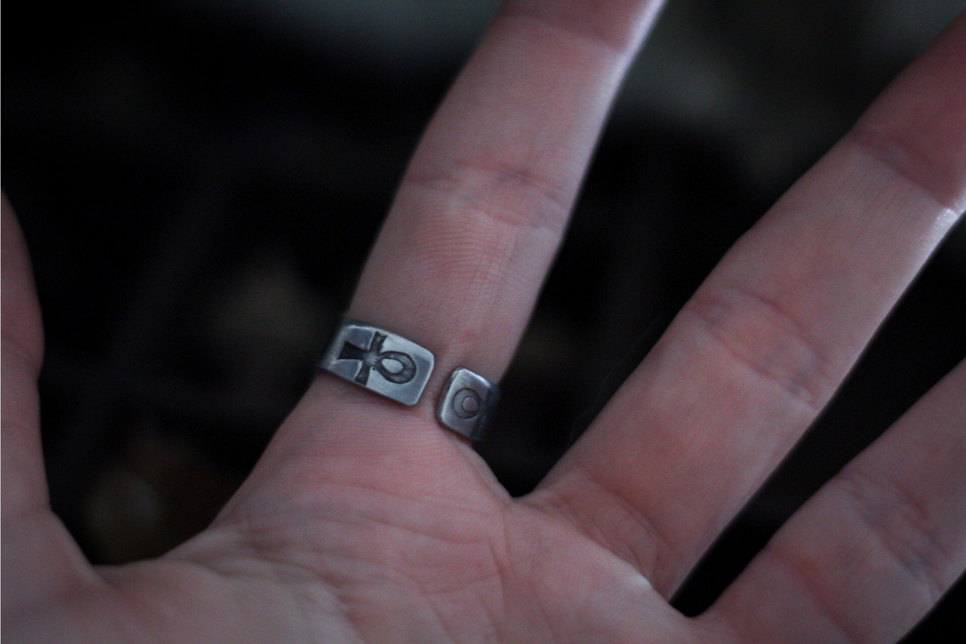 Fully handcrafted Eye of Horus Egyptian ring is made in your choice of sterling silver, aluminum or copper. Featuring 4 Ankhs on the sides of the ring band.