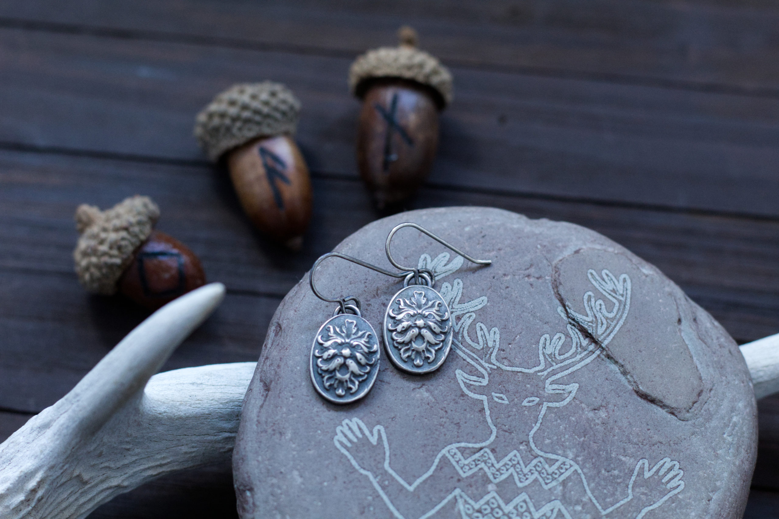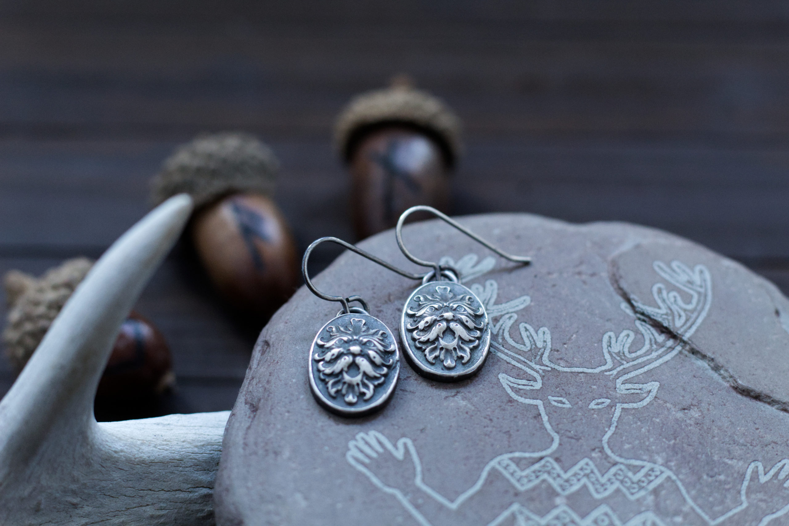 These Greenman earrings are hand forged in solid fine silver and given a blackened finish. Perfect for the Green Witch or nature lover 🙂