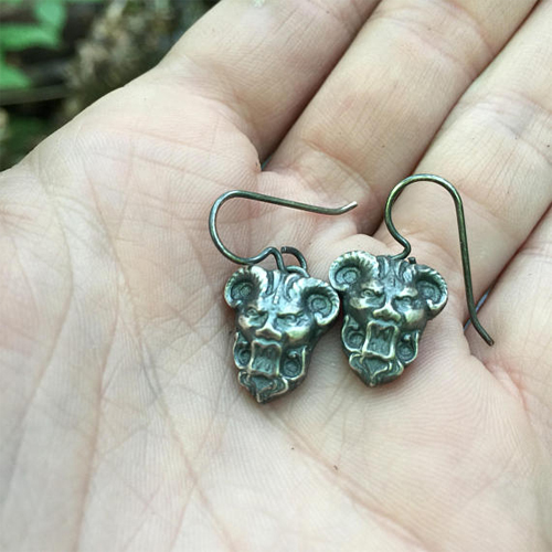 These Krampus earrings are hand forged in solid fine silver and given a blackened finish. A tribute to the Bavarian Krampus / Perchten masks worn during the darkest times of the year, the infamous Rauhnächte.