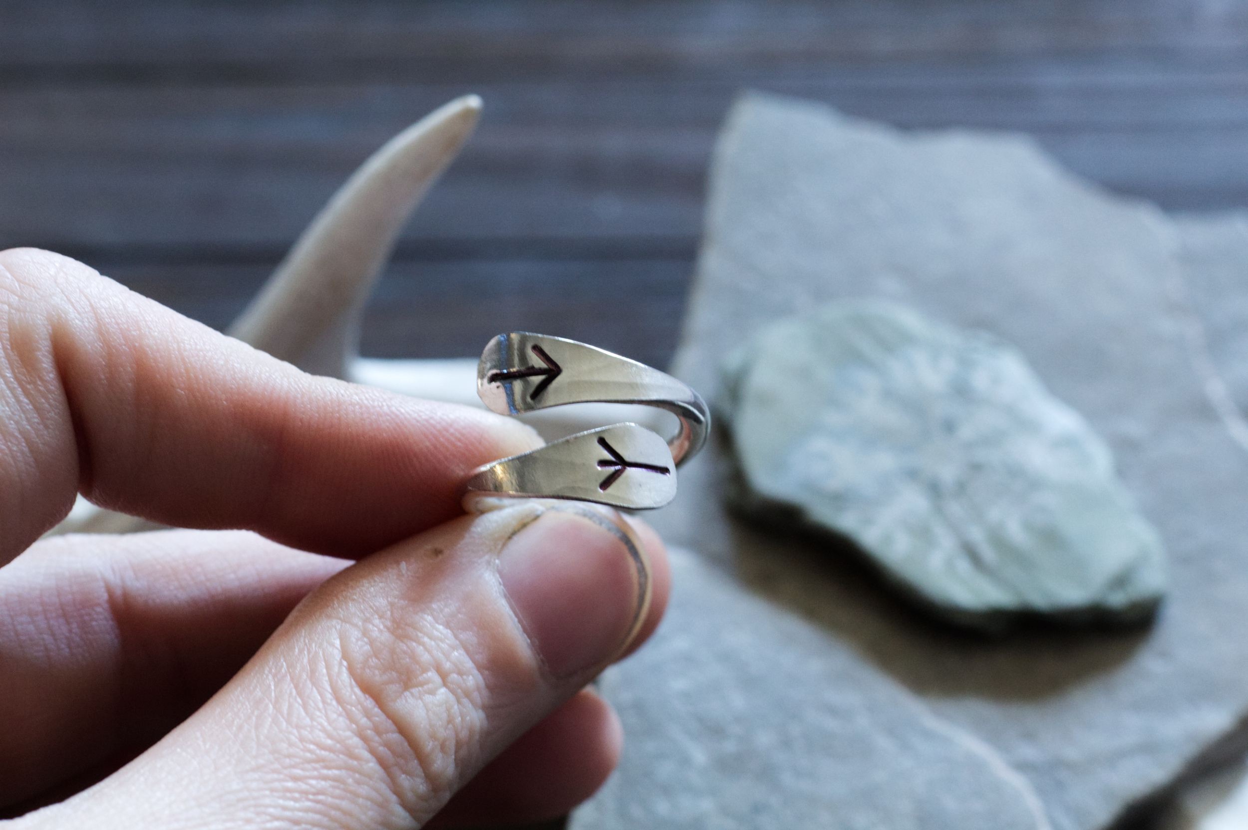 Old World craftsmanship in solid fine silver, this ring is made uniquely yours – allowing you the freedom to choose two Elder Futhark Runes. This silver Rune ring is ultra comfortable and contours around your finger, making it great for daily wear that is minimal, but also adds a modest luxe with its polished finish.