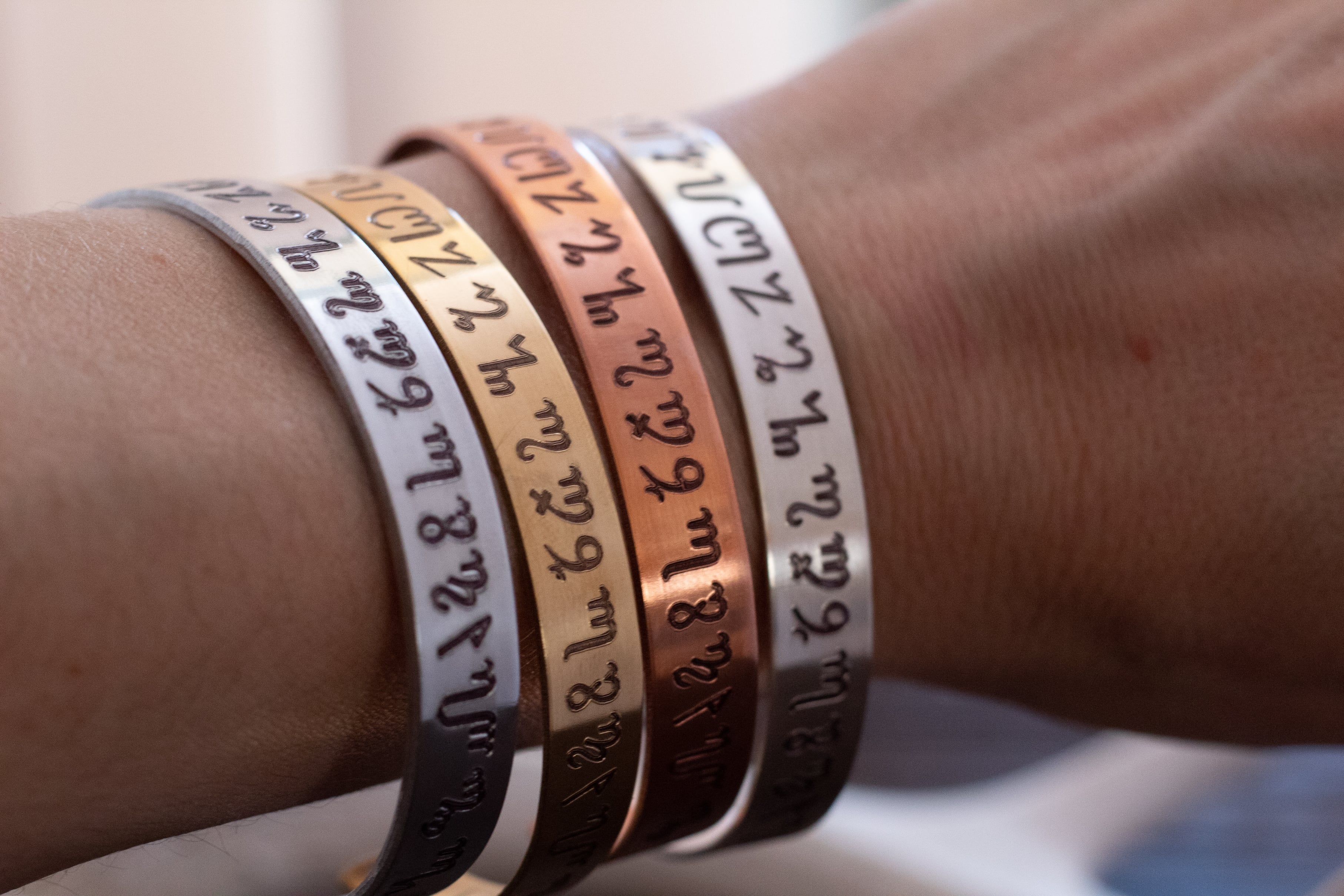 Handcrafted in your choice of metal, this bracelet is adorned with the full Theban / Witches Alphabet. You can also personalize it with your own spell or inscription. Please note more than 1 sentence may result in a double sided bracelet. Leave custom text box blank if you would like the bracelet as shown in the pictures.