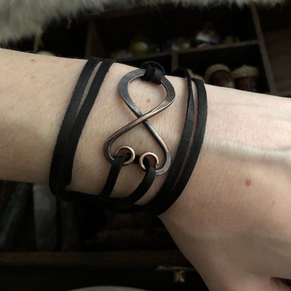 Troll Cross pendant forged by fire and hammer and crafted in your choice of copper or sterling silver. Topped with an aged finish and rests on a black deer tan cord. This is a wrap style bracelet, so all you need to do is wrap around your wrist a couple times and tie the ends.